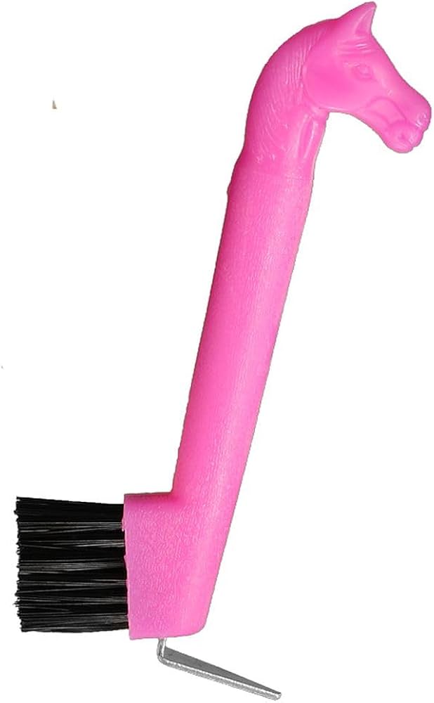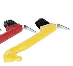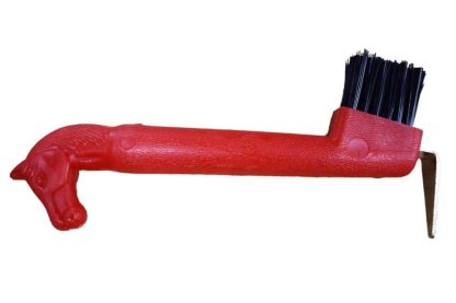 Functional and durable hoof pick with brush and a horse head. Choose from a variety of colors.